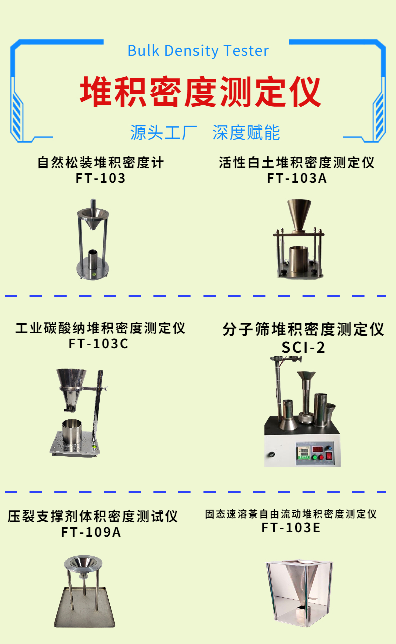例舉FT-102E粉末流動(dòng)性測(cè)試儀就是一款專門為解決這些問(wèn)題的推薦機(jī)型,所使用的儀器稱為堆積密度測(cè)定儀,用于分析粉體顆粒物的工藝性能的評(píng)價(jià)方法所使用的儀器稱為堆積密度測(cè)定儀,用于分析粉體顆粒物的工藝性能的評(píng)價(jià)方法所使用的儀器稱為堆積密度測(cè)定儀,用于分析粉體顆粒物的工藝性能的評(píng)價(jià)方法所使用的儀器稱為堆積密度測(cè)定儀,用于分析粉體顆粒物的工藝性能的評(píng)價(jià)方法