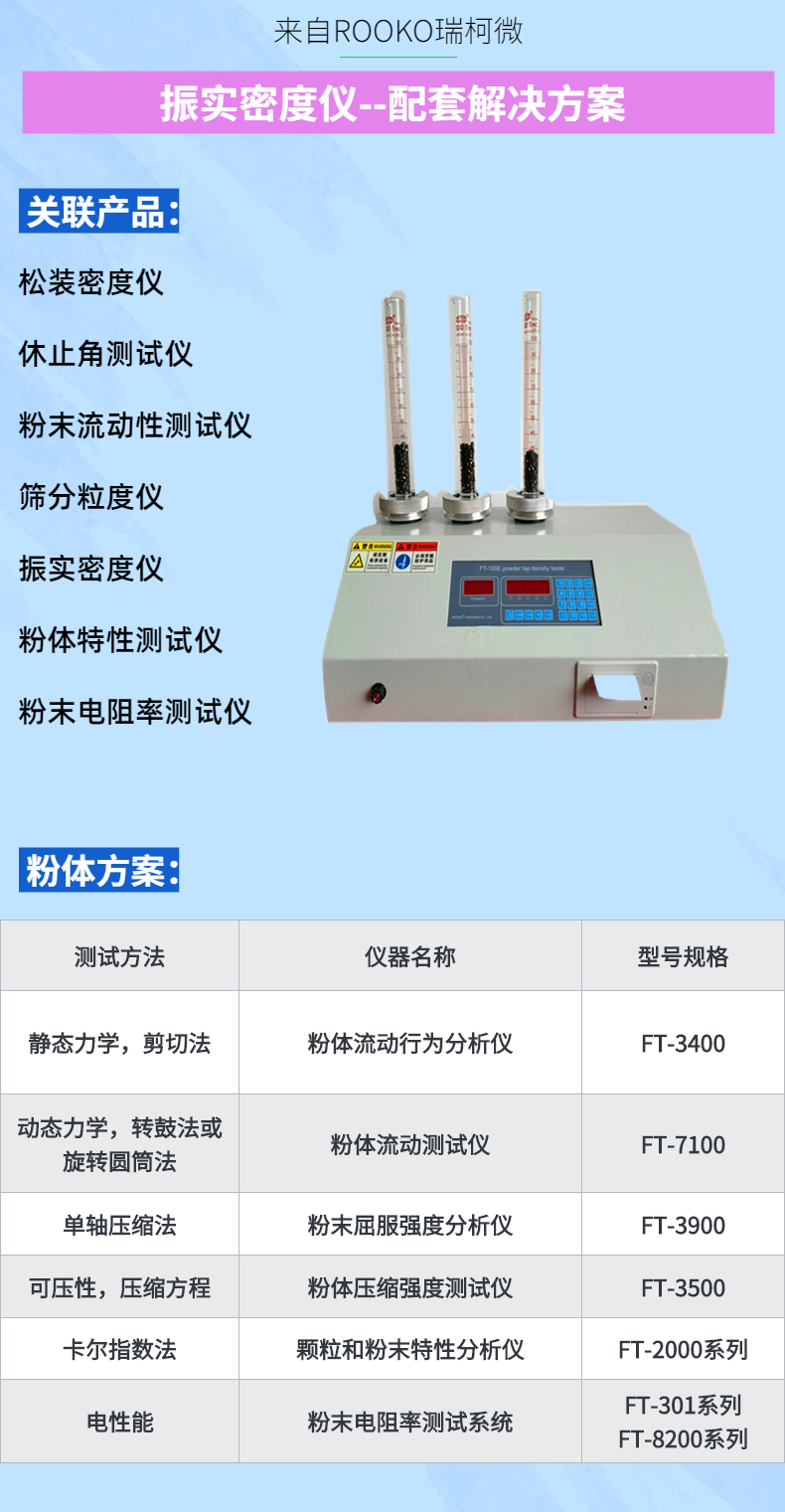 以上三種方法均可以測定粉末的堆積密度,需要根據(jù)實際情況選擇合適的方法。在生產(chǎn)工藝中,一般會綜合考慮粉末的松裝密度、振實密度和壓縮密度等多項因素,以確定粉末的最佳堆積特性和生產(chǎn)效率。