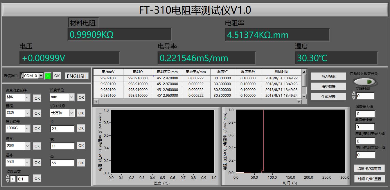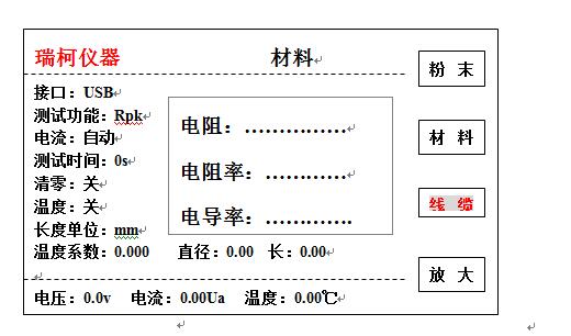 4. 顯示:電流、電壓、溫度、電阻率,電導率,電阻等數據.